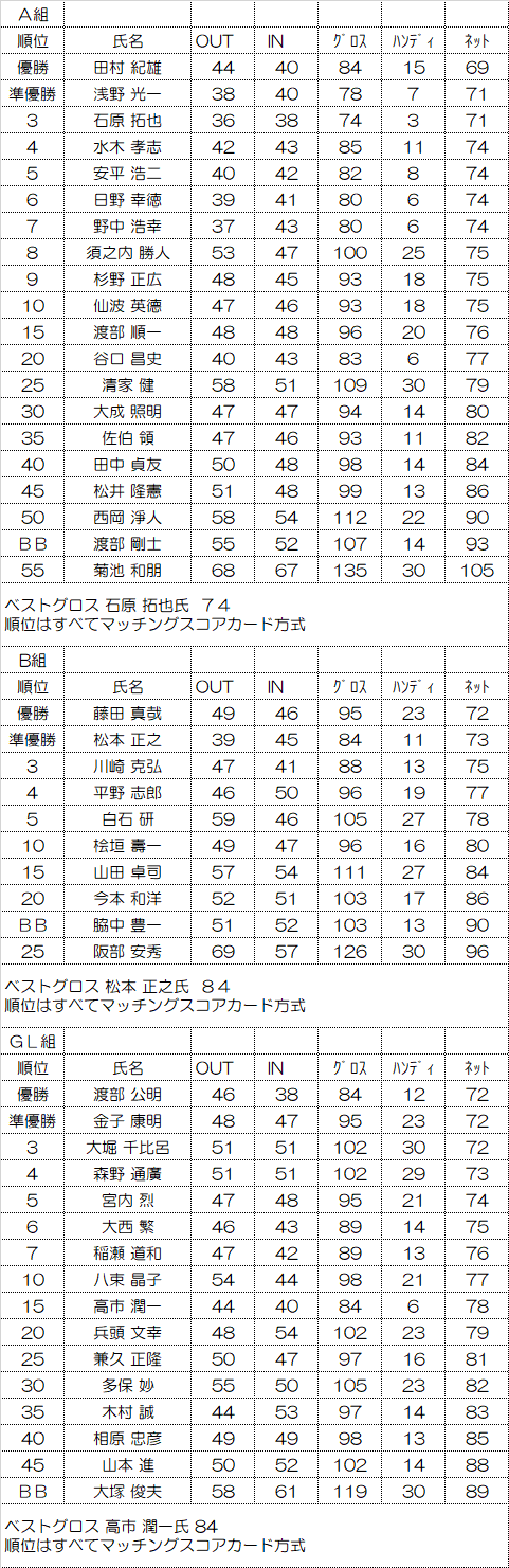 | ベストグロス 佐伯 領氏 76 順位はすべてマッチングスコアカード方式 |