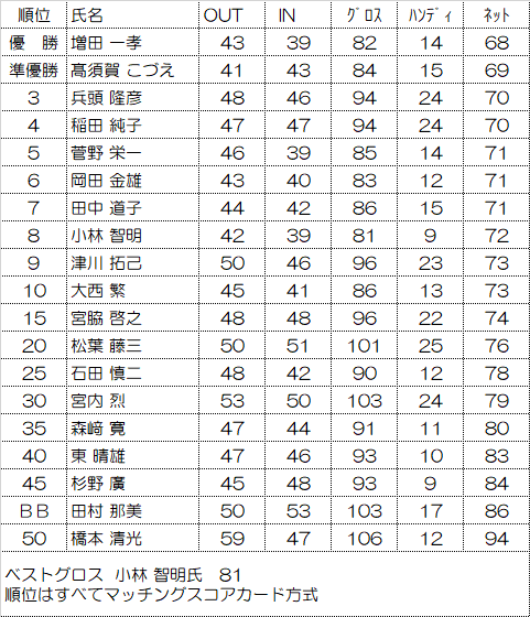 | ベストグロス 山本 正聡氏 81 順位はすべてマッチングスコアカード方式 |