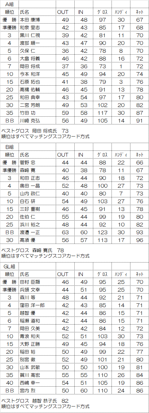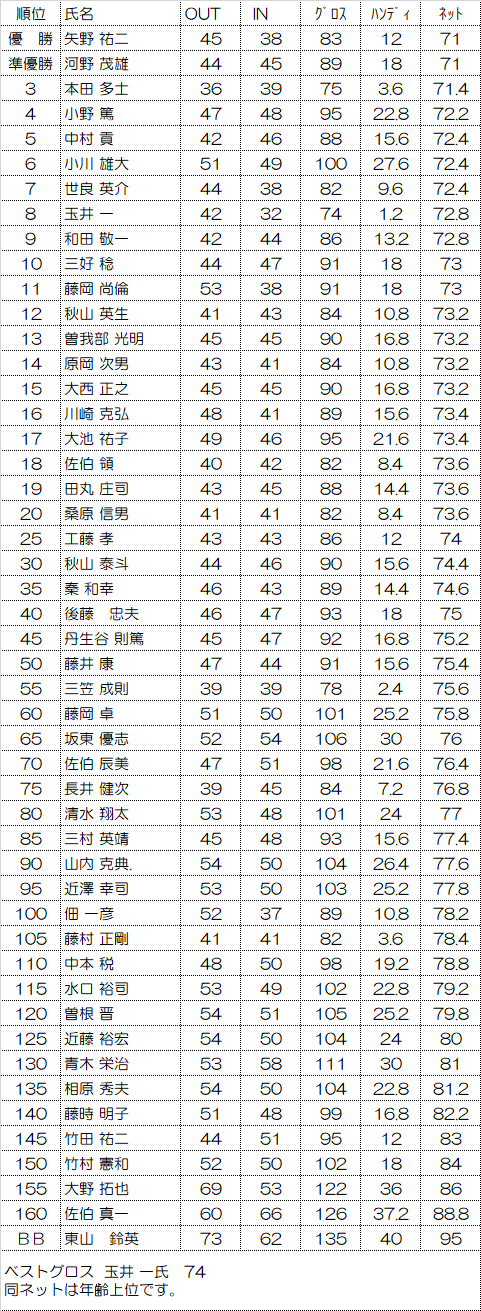 | ベストグロス 佐伯 領氏 79 順位はすべてマッチングスコアカード方式 |