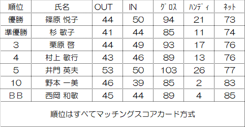 | 順位はすべてマッチングスコアカード方式 |