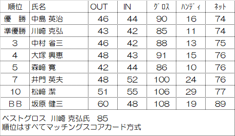 | ベストグロス 佐伯 領氏 76 順位はすべてマッチングスコアカード方式 |